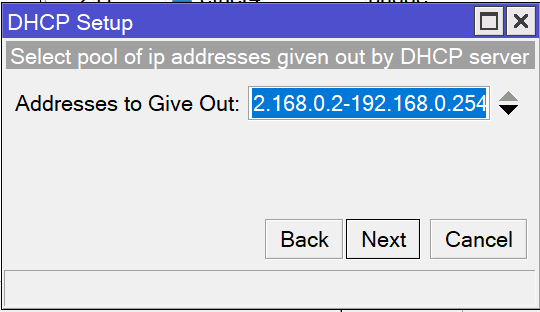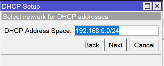 接下来设置DHCP网域的地址空间,这里需要与上面设置的网桥IP地址为同一地址空间,此例中为192.168.0.0/24。完成后点击Next。