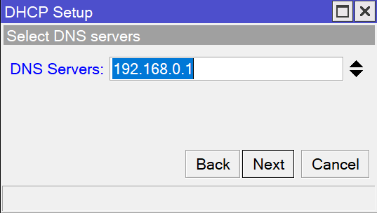 下一步选择使能”Add DNS”,再下一步设置DNS的地址。此处为DHCP服务器为其客户端指定的DNS服务器,一般填写网桥的IP地址,将DNS请求交给网桥处理。