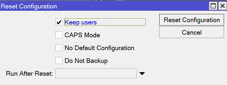 1. 首先使用 System => Reset Configuration 清除所有的设置,如果希望保留用户名密码信息清除时可选择Keep users选项。