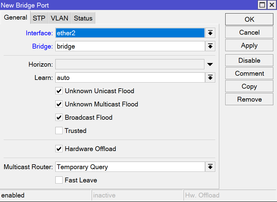 2.2 在Ports标签页面将需要添加的网口添加到桥上,Interface依次选择需要添加的网口,Bridge选择刚刚创建的Bridge名称